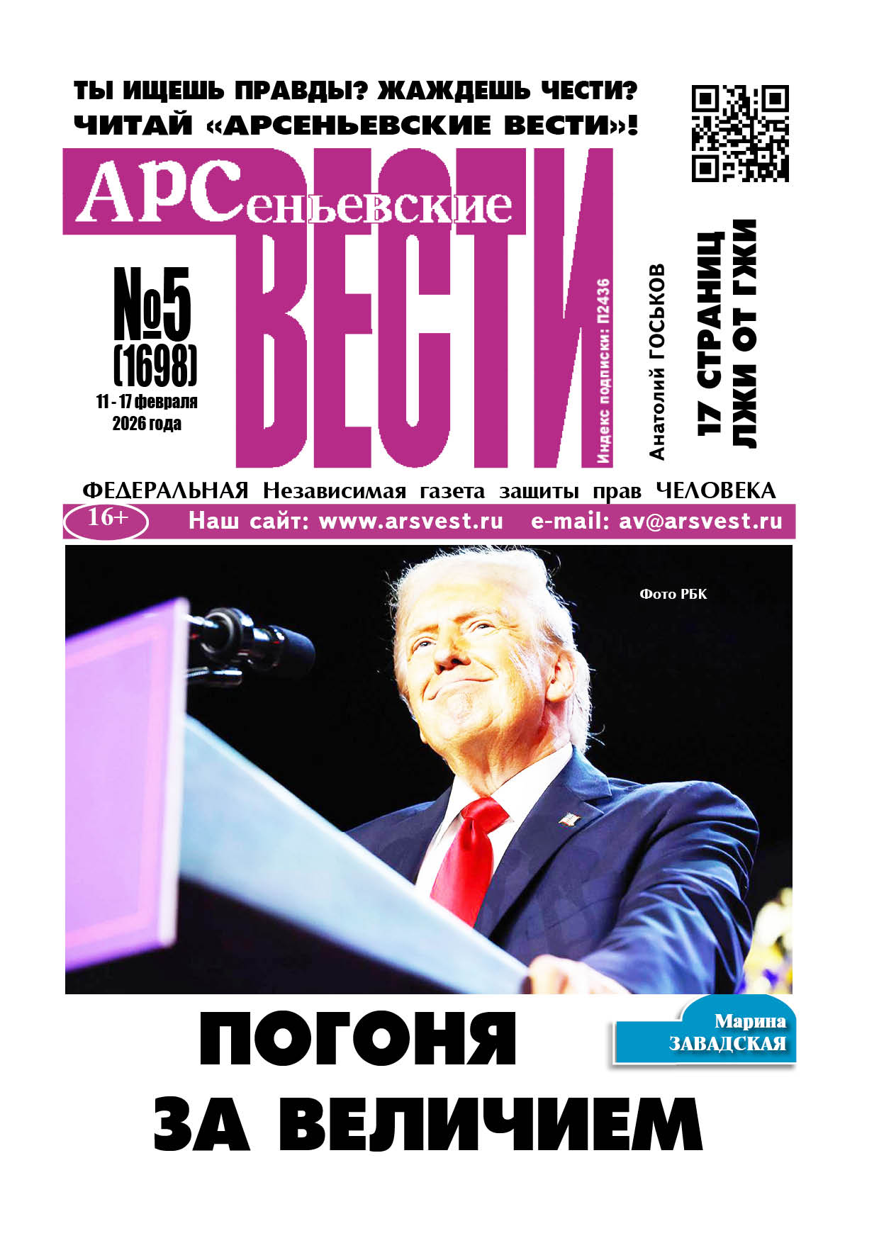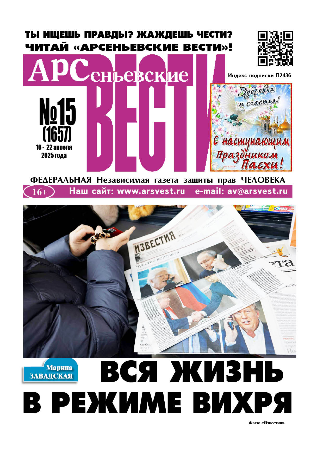 © Арсеньевские вести, 1992—2022. Индекс подписки: П2436