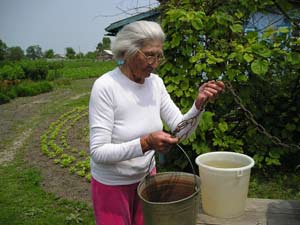 Инвалид первой группы по зрению, 86-летняя участница войны продолжает жить в столетней деревянной избе с печным отоплением. Только что перенесла операцию. День Победы «отпраздновала» в больнице. Теперь, как зеленый росток весной, тянется к жизни.