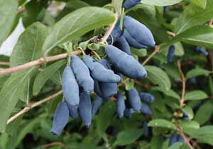 • Жимолость съедобная или синяя, как ее называют, новая культура для нас. Старые ее сорта: Голубое веретено, Синяя птица, Старт – это камчатская жимолость, с Дальнего Востока.