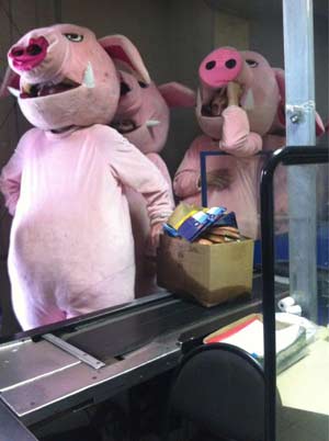 А вот сотрудники магазина оказались уверены в другом: они хрюш избили. Довольно сильно избили, тут уж без притворства: трое в больницу попали. Причем избивавшие, если говорить политкорректно, были выходцами с Кавказа, а НАШИ – в свинячьих костюмах, что позволило кавказцами приговаривать во время процесса избиения про «русских свиней». Ну и расколотили нашистские фотоаппараты и прочую подобную технику.