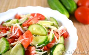 1) Солнечный. 250 г пекинской капусты, стручок сладкого перца, 2 огурца, 200 г брынзы. 2 апельсина, 100 мл оливкового масла, 0,5 ч. л. лимонного сока, соль, перец – по вкусу. Капусту нарежьте тонкой соломкой, брынзу и перец – небольшими кусочками. Апельсины, очистив от шкурки и пленок, нарежьте кубиками. Всё соедините. Оливковое масло смешайте с лимонным соком, заправьте салат, посолите, поперчите, перемешайте, а подавая, украсьте кусочками апельсина.