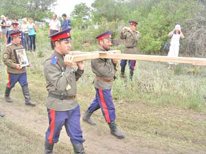 На самом деле казаки сделали только основание для большого креста, но пока не поставили, а второй крест, поменьше, поставили в другом месте. Чтоб охранял.