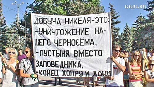 Казаки устроили сход в Новохопёрском районе Воронежской области, неподалёку от места, где предполагается вырыть котлован под строительство промышленного гиганта. В сходе участвовали не только представители Всевеликого войска Донского, Союза казаков России, Национально-культурной автономии казаков, но и сочувствующие им жители многих городов России. И решили установить крест на месте предполагаемой добычи никеля, ради которого должны снести остатки старых хуторов и кладбищ и обещали его охранять.