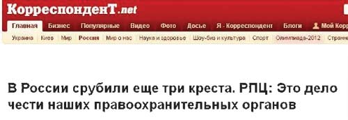 Первый пример был не у нас, первый крест спилили украинские Femen – ну те, что полуголые выступают. А никто их всерьез не воспринимает. Вон даже в Турции они ринулись полуголые в мечеть – а их всего лишь выслали из страны и запретили въезд на год. К тому же они спилили крест не скрываясь! Так что у нас – не они.