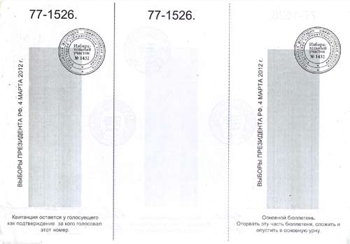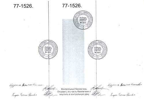 На второй части бюллетеня, рядом с номером печатается текст: «Эту контрольную часть бюллетеня оторвать по сгибу, сложить его так, чтобы номер не был виден, и опустить её в контрольную урну № 2 для голосования».