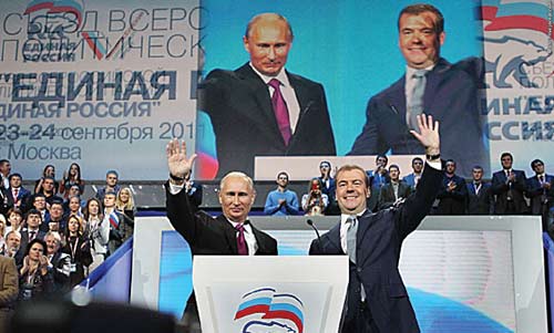 Год назад, 24 сентября 2011 г., произошла роковая рокировка. На съезде «Единой России» президент Медведев объявил, что следующим президентом будет Путин. Типа мы посовещались, и я решил. Понятно, что «я» не Медведеву принадлежит. То есть давайте выдвинем, он достоин… Ну, всё, что в таких случаях принято говорить.