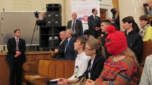 Студентка МГУ пришла на встречу с патриархом Кириллом в красной балаклаве, в которых активисты проводят акции в поддержку осужденных участниц панк-группы Pussy Riot, сообщают «Известия». Девушка просидела в первом ряду почти полчаса. Ближе к концу речи патриарха девушку заслонили от кафедры и президиума несколько мужчин. Они попросили ее снять головной убор. Сняв красную балаклаву, она надела синюю, однако сотрудники охраны забрали и ее.