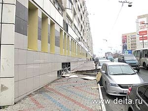 Капитальный ремонт фасада дома №28 А по Партизанскому проспекту был произведен не так давно по федеральной программе, в рамках приведения в порядок «красной линии» Владивостока к саммиту АТЭС-2012. Мероприятие международного уровня состоялось, а новенькие фасады отремонтированных домов не выдерживают серьезного ветра.