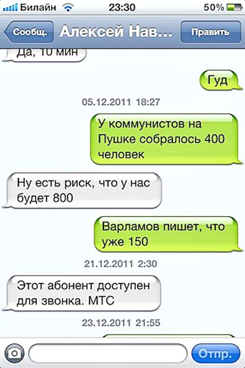 Вот, забегая вперёд, Яшин откопал наши смски. Чтоб было понятно, какие ожидания были от митинга: