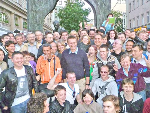 Подойти к сцене невозможно. Всё перекрыто милицией. Пришлось лезть через забор, а заодно подарить Путину цитату (некрасиво конечно, признаю). Сергей Власов из РосУзника тоже вот этот момент вспоминает.