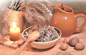 Традиционное славянское рождественское блюдо. 1 стакан очищенных зёрен пшеницы, 100 г мака, 100 г ядер грецких орехов, 1-3 столовые ложки мёда. На воде из чистых зёрен варят обычную рассыпчатую постную жидкую кашу, охлаждают. Отдельно растирают мак до получения макового молочка, добавляют мёд, всё перемешивают и добавляют к пшенице. Если каша густая, её можно разбавить кипячёной водой. В конце добавляют толчёные ядра грецких орехов.