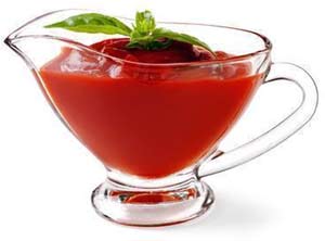 Пол-литра не горячего грибного бульона или овощного отвара или воды; 2 столовых ложки пшеничной муки протрите с рафинированным подсолнечным маслом (сколько возьмет); 2-3 столовых ложки томатной пасты; 1/3 чайной ложки сушеного базилика; раздавите 1 зубчик чеснока (через давилку или на доске раздавите и мелко порежьте); 2-3 cт. ложки подсолнечного масла. На горячую сковороду – подсолнечное масло и томатную пасту. Когда паста начнет шкворчать, влейте жидкость, уменьшить нагрев и введите, помешивая, перетертую с маслом муку. При необходимости посолите. Помешивая, добавьте базилик, доведите до кипения, вложите чеснок и сразу снимите с огня.