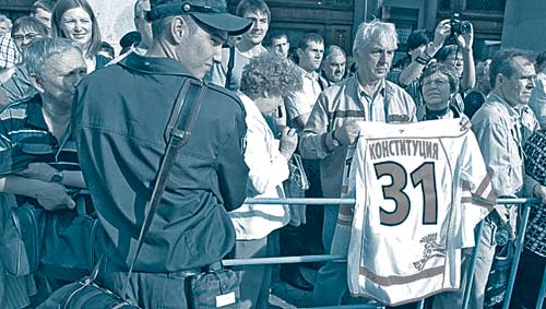 На снимке: выступления в защиту 31-й статьи Конституции неизменно разгоняются полицией.