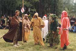 А что же делать девушкам, желающим участвовать в игре, в ролевом движении? Вообще-то выход простой: придумать себе имя, биографию - и быть уникальным персонажем. Но это же думать надо, напрягать фантазию - а между тем обаяние толкиновской Галадриэли велико... Вот и торопятся пришедшие в движение девчонки назваться Йовин, Галадриэлью или Лобелией - а кто не успел, тот опоздал!
