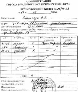 Казалось бы, что такого чудесного в этом лесорубочном билете, выданном отделом экологии администрации Владивостока? Деревья, бывает, и на Семеновской кренятся, не только на Клеверной, 22.