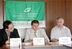 На фотографии Галины СМАКОТА, сделанной в Институте развития прессы, слева направо: Александр Гессель (Совет Европы), Александр Сунгуров (центр «Стратегия»), Марк Куперман (координатор по Дальнему Востоку).