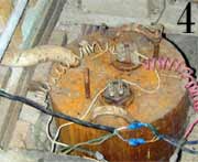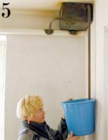 На первом этаже под полом стоит этакий нагревательный котелок (см. фото 4). А на втором этаже к трубе приварен так называемый «расширитель»: железная коробка со свисающей трубой. Когда включается отопление, хозяйка с ведром пристраивается к этому расширителю (см. фото 5). Как вы знаете из школьного курса физики, вода при нагревании расширяется, а расширившись, начинает из свисающей трубы капать. Тогда хозяйка быстро бежит вниз и котелок отключает. Кстати, официально этот котелок называется «бойлер».