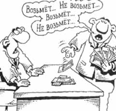 Явление это не новое, оно уходит своими корнями в дореволюционную Россию. Вспомните, как еще Петр I пытался бороться с ним, перечитайте Гоголя, Салтыкова-Щедрина, А.Н. Островского, Некрасова, Чехова. При советской власти расцвет ее пришелся на брежневский период, когда воровство из государственной казны и принятие подношений от зависимых лиц перестало считаться грехом в номенклатурной среде. Наибольшую же безнаказанность государственный аппарат ощущает сейчас, он даже придумал для себя оправдание: дескать, чиновники мало получают, потому и берут взятки. Выходит, надо повысить им зарплату? А на сколько? Потребности-то у всех разные, одному достаточно приличной квартиры, другой хочет иметь загородную виллу; один проведет отпуск в Сочи, другому подавай Канары; один покупает наряды только жене, другой, кроме того, содержит парочку любовниц, тоже охочих до подарков. Неужели же спрашивать: «Тебе, Сан Саныч, какая зарплата нужна, чтобы ты не воровал? Так. А тебе, Василь Василич?» Надо же, в конце концов, определиться!