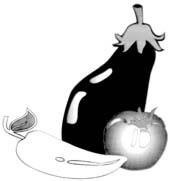 250 г баклажанов, 100 г свежих помидоров, 50 г сладкого стручкового перца, 5-6 долек чеснока, 50-70 г растительного масла, по 1 столовой ложке мелконарезанной зелени петрушки и укропа, уксус, соль, молотый перец.