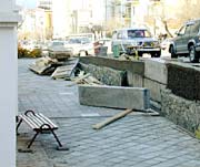 Вот теперь на той стороне Фонтанной, что мимо Серого дома проходит, тротуар уничтожают. Чтоб, значит, не ходили мимо всякие, а только на машинах проезжали. А у хореографического училища и лесенку к центральному входу обрезали и плитами заложили.
