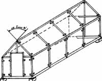 Вся конструкция сварена электросваркой и установлена углами на шлакоблоки, камни, чурки, что есть под рукой. К боковым стойкам, стропилам, а также к торцевым стойкам приварены стальные пластины размером 100x50x3 мм с отверстиями под гвозди (болты, шпильки).