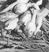 При массовом разведении лука советуем подразделять его при посадке по величине луковицы. Как уже говорилось, большая луковица дает потомства больше (до 8 штук), но массой они будут меньше, нежели потомство, полученное от луковицы меньшего размера, которая дает меньше луковиц (3-5), но большей массы каждая. Это исключает необходимость какого-либо прореживания гнезд для получения крупных луковиц.