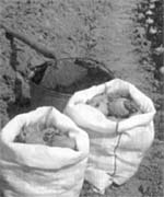 Следует отметить, что посадка картофеля частями клубней несколько замедляет рост растений и накопление урожая. Чем меньше размер частей , тем дольше не появляются всходы, поэтому клубни, предназначенные для резки, необходимо предварительно прорастить. Чтобы предотвратить распространение инфекции, нож, которым разрезают клубни, время от времени опускают в 3-5% раствор лизола. Необходимо, чтобы каждая часть клубня имела массу 30-40 г и 2-3 ростка. Лучше всего резать клубни в день посадки. Можно сделать это и заблаговременно, но тогда необходимо оставлять перемычки. Делают это так: клубень вдоль от его верхушки разрезают так, чтобы на пуповинном конце остался неперерезанный участок в 1-2 см. Клубни проращивают на свету, а непосредственно перед посадкой разламывают и высаживают в почву отдельные части.