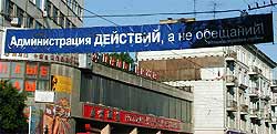 А вот сейчас донос: на растяжке не указано, из чьего предвыборного фонда она оплачена! Правда, не указано и то, какая администрация имеется в виду.
