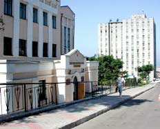 Перед фасадом хореографического училища, где был разрушен обустроенный участок с деревьями и газонами ради автостоянки, поставили ограждение из оранжевых пластмассовых конусов. Дежурят представители ГАИ. Ни одна машина не паркуется.