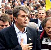 На снимках: Виктор Ющенко на митинге (вверху); Янукович, Путин, Кучма.