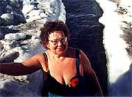 5 лет являюсь членом клуба моржей. Основные месяцы зимнего плавания: декабрь, январь, февраль. За месяц надо окунуться и поплавать в проруби самое малое 10 дней, каждое посещение мы отмечаем в журнале. Из проруби выхожу бодрой, энергичной, веселой, уходят с души печаль и хандра, хочется петь и танцевать, болезней никаких, трудоспособность повышается, возраста не чувствую, хотя мне 65 лет.