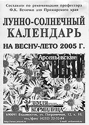 Поступил в продажу лунно-солнечный календарь на весну-лето 2005 года
