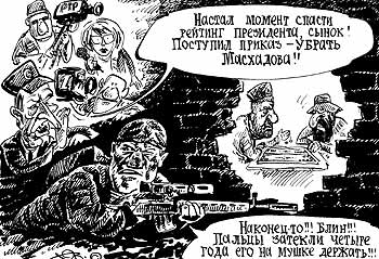 Кстати, если верить словам Р.Кадырова, он даже намеревался предложить А.Масхадову должность командира взвода в полку специального назначения: “Он был хорошим, толковым офицером, хорошо служил в Советской Армии, и мы хотели использовать его опыт”, - подчеркнул первый вице-премьер. Он также пообещал, что в ближайшее время участь А.Масхадова разделит и Шамиль Басаев.