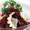 Свекла с перцем и орехами Для этого салата возьмите 5 свекол среднего размера, 1 ст. очищенных грецких орехов, 1 сладкий перец, 2 зубчика чеснока, 3 ст.л. винного уксуса, зелень – петрушку, кинзу.