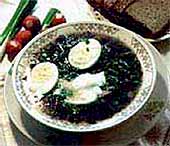 Чтобы щи сохранили зеленый цвет, щавель, шпинат, крапиву (порознь) сначала слегка припустить на сковороде в собственном соку, потереть через сито, только затем соединить в пюре. Лук припустить в масле. В кипящий бульон или воду кладем картофель, через 10-15 минут- пассерованный лук, зеленое пюре, соль, специи, мучную пассеровку. Томить на слабом огне 10-15 минут, подавать со сметаной, рубленой зеленью, половинкой крутого яйца.