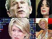 Джордж Буш, Майкл Джексон (фото Reuters), Марта Стюарт (кадр CNN) и Пэрис Хилтон (фото с сайта goettgen.de)
