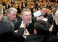 В потасовку включилось еще 15-20 депутатов. Спикер Госдумы Борис Грызлов, пока длилась драка, повторял как предсмертную молитву одни и те же слова: “Мужчины успокойтесь!”
