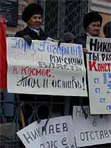 Нет, нельзя назвать теплой и дружественной эту встречу. Самым популярным у народа был плакат “Николаева в отставку!” Именно этот текст народ время от времени дружно скандировал.