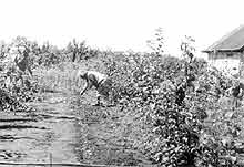 В саду в течение весны и в первой половине лета прополку и рыхления проводят 5-6 раз. Каждому садоводу мало приятного доставляют испачканные землей созревающие ягоды земляники, осыпающаяся жимолость во время поливов или дождя. Кроме посадок ягодников по черному укрывному материалу используются и другие способы. Связывание кустов земляники пучками, различные подпорки и подставки, укрытие междурядий соломой либо опилками.