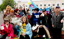 Все прибывшие получили по юбилейной кружке, многим достались и фирменные футболки. Главный победитель викторины Светлана Мазурина отказалась от суперприза - электрического поттера, и попросила взамен футболку.