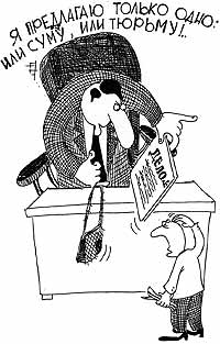 - Э-э, нет! Вы нас привлечёте сразу к суду за клевету, - ответили участники круглого стола. - Лучше Вы назовите хоть одного судью, который ни разу не брал взятки!