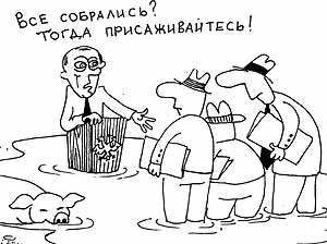 К тому же из руководящих голов не выветрились еще воспоминания о дефолте 1998 года. А вдруг опять произойдет нечто подобное? Где гарантии, что в этом случае озверевшие соотечественники не вышвырнут высших чиновников из роскошных кабинетов и не нанесут им оскорбление действием?