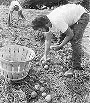 Отбор картофеля семенной фракции с общей накопанной кучи во время переборки самое нежелательное явление. Отбор растений на семена надо начинать при зеленой ботве, колышками либо цветными лентами отмечая все нежелательные кусты. Позже, при копке, нужно кроме выбракованных заранее кустов, проводить дополнительную выбраковку по урожаю.