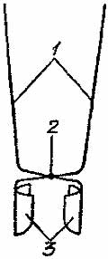 Инженер В. Томашков из г. Приморска Запорожской области сделал приспособление (см. рисунок) для пересадки земляники. Оно состоит из двух частей, скрепленных осью 2.