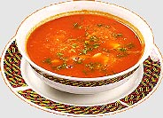 Переложить все в кастрюлю, развести водой и проварить несколько минут. Похлебку подавать холодной, посыпав черным перцем, зеленью укропа и петрушки. Можно приготовить с добавлением риса или картофеля.