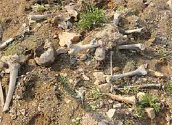 Ну и, как говорится, вчера стенку поставили, а сегодня она рухнула, грунт осыпался, и обнажились очередные могилы. Прибыла милиция, эксперт сфотографировал кости (см. фото), на том всё и закончилось. Мы, говорят менты, можем остановить только руководителей стройки, а их нет на месте. Рабочих остановить не можем.
