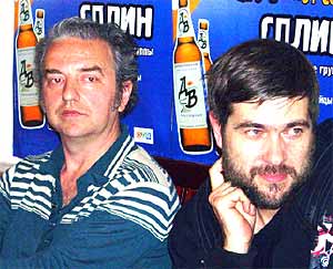 На пресс-конференцию, которая проходила в субботу, артисты пришли вместе, но было видно, “Сплин” комплексует из-за повышенного внимания журналистов к кумиру молодежи конца 90-х. Выдало его поведение: нервно покуривал, пряча сигареты под столом, как школьник, был неразговорчив, и в глазах чувствовалась печаль. “Возможно, повлиял на его сегодняшнее поведение перелет, к тому же только вчера он отыграл концертную программу, устал и не выспался”, - объясняется Дмитрий Музыченко, директор по маркетинговым коммуникациям ОАО “Балтика”. На мой вопрос к Александру, лидеру гр. “Сплин”: “У вас депрессия?” - он ответил громким и протяжным голосом: “Д-Д-Да-а-аа”. А через пару минут он даже назвал свою группу “разогревающей командой”. Видимо, он сильно переживал по этому поводу, и, наверное, по этой же причине на концерте произошла замена: первыми начали выступление “Чайф”. Но хотим обрадовать поклонников этого коллектива: по словам Васильева, скоро выйдет их новый альбом, и осталось ждать его совсем немного. Будут ли снимать видеоклип на одну из композиций, ответил, что “у режиссеров, к кому он обращался, пока нет хороших идей, а если и есть, то там не из чего выбирать. И если даже они снимут его, где будут его показывать?” “Если только ночью, и то из уважения к коллективу”, - добавил Шахрин, приводя собственный пример. Почему не пишут саунд-треки к фильмам, шутливо ответили: “Не бухаем с режиссерами, поэтому нас и не приглашают”. Также Владимир рассказал, легко ли быть Послом Доброй воли ООО в России. “Сначала я окунулся в это дело с чистой душой. Но затем Всемирная здравоохранительная организация почему-то восприняла, что мы будем делать все, что они попросят. При этом никаких денег, никаких привилегий. Меня используют в некой пропаганде в борьбе с туберкулезом в России. Это действительно очень серьезная проблема. Но когда мы спросили, какой у них бюджет на год, и что они собираются делать с этим, люди ответили, что никакого бюджета нет. Все, до свидания. Вообще, сейчас у нас идет период переговоров, и непонятно, будем мы дальше с ними сотрудничать или нет”. Кстати, группа “Чайф” выпустила новый альбом “От себя” и пару песен представила публике в это воскресенье.