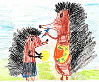 Другие дети рисовали также к этому и другим стихам: у Мезекаевой Иры ежиха-мать причёсывает сыночка.