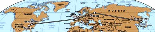 Владивосток не так уж далек от Америки - всего-то 9 часов полета. Но русский человек привык преодолевать гигантские трудности, которые сам же зачастую и создает. И позже, в Цинциннати, один американский пилот долго никак не мог взять в толк: как можно из Владивостока лететь в его родной город через Москву и Париж. Мы были почти двое суток в пути, 24 часа в небе.