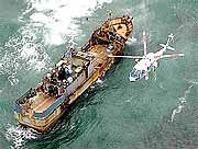 | В море и дружбе Напряжение в российско-японских отношениях, вызванное гибелью японского рыбака при задержании шхуны Kisshin Maru-31 16 августа, начало спадать. 31 августа японские корабли и вертолеты оказали помощь российскому траулеру “Пасифик-3”, севшему на мель (на фото). А позднее представитель МИД РФ Михаил Камынин признал, что заход 27 августа в российские территориальные воды 39 японских шхун, названный Москвой “вызывающей провокацией”, не противоречит действующим между РФ и Японией соглашениям.